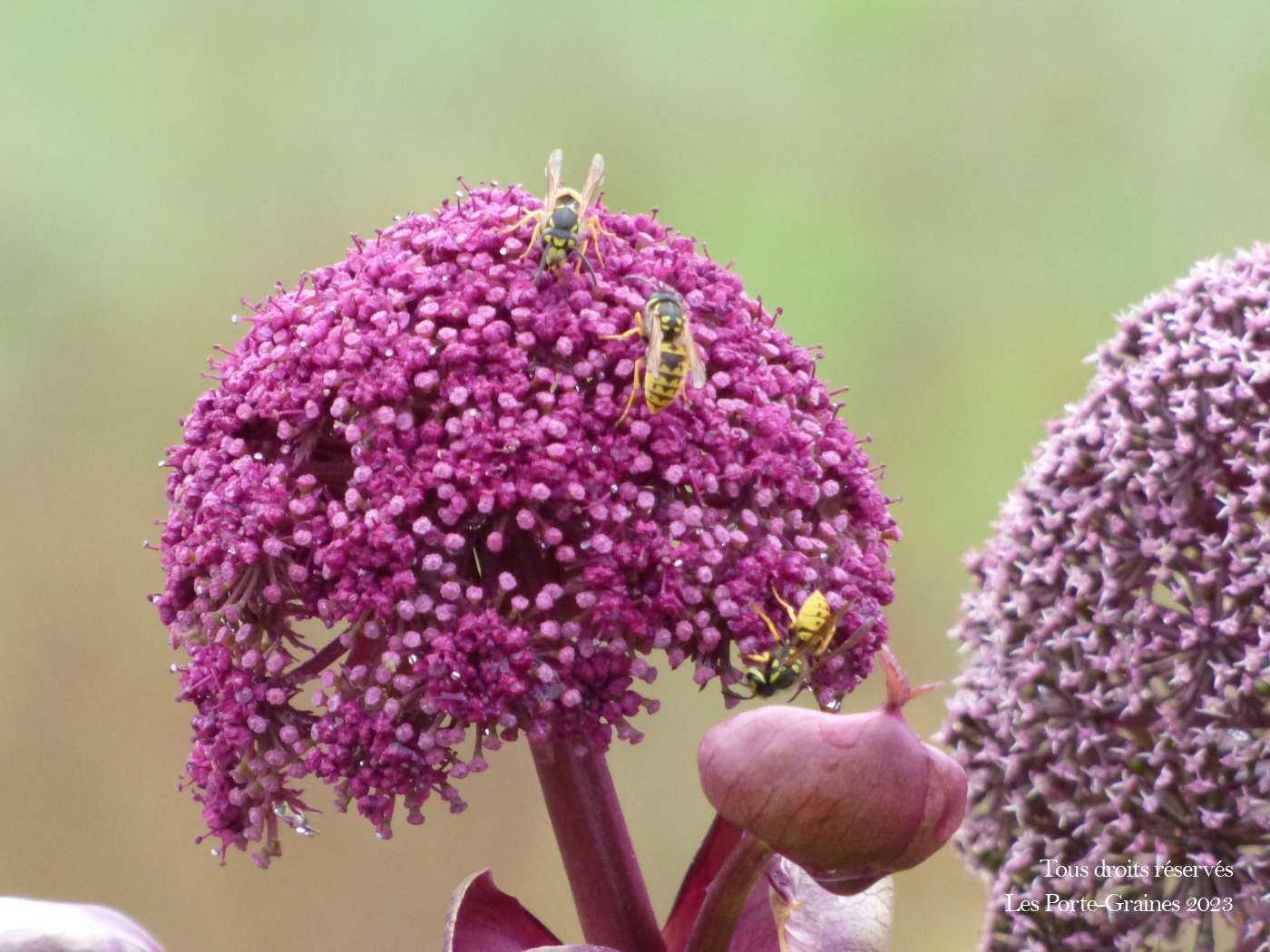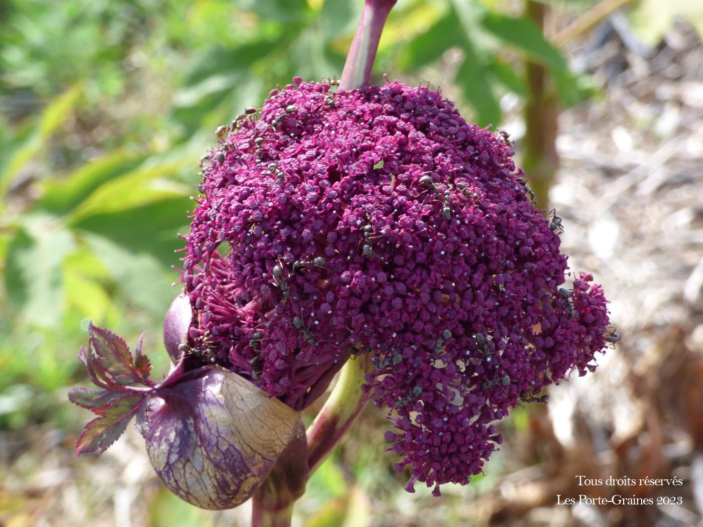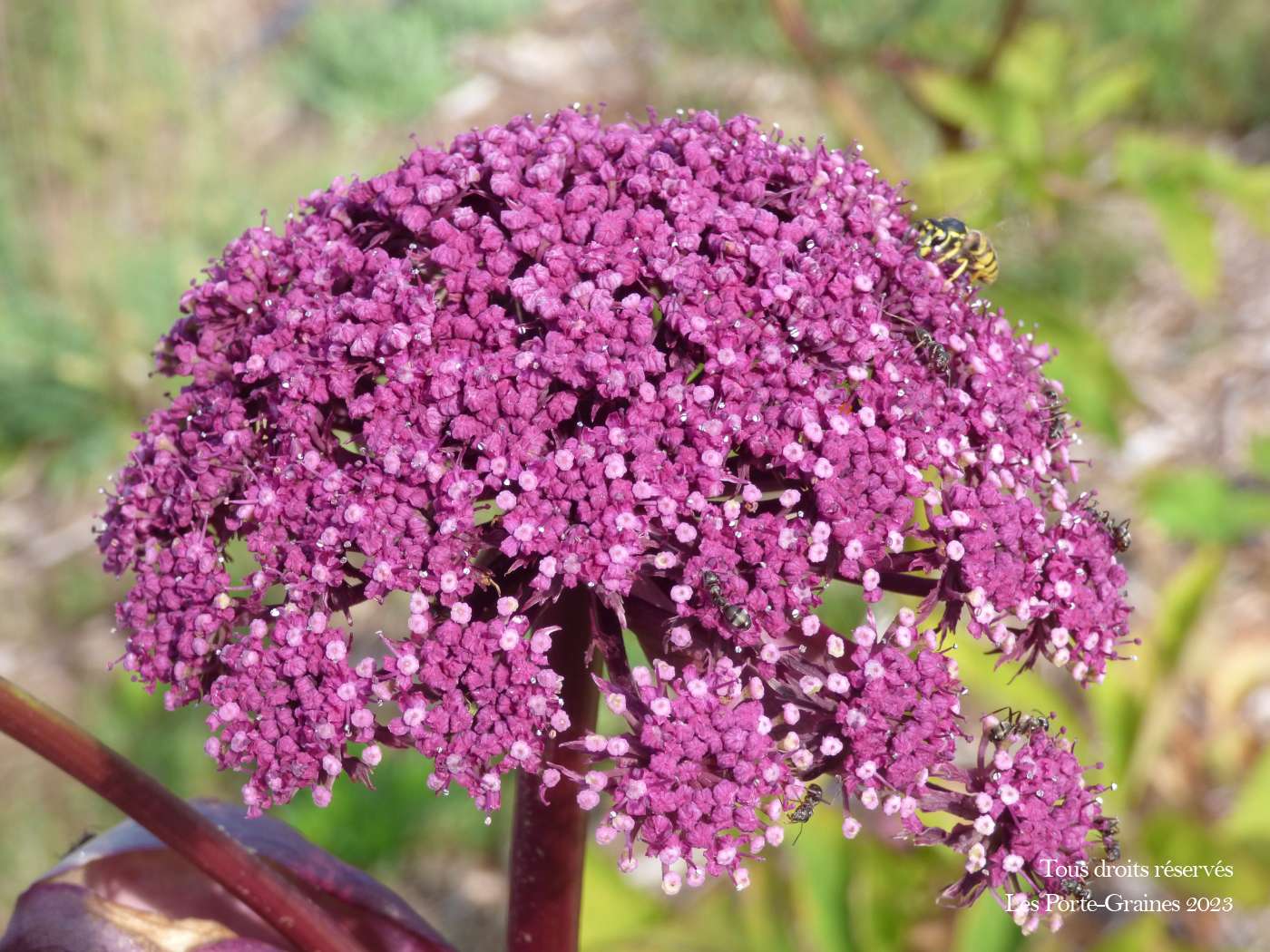 Belle angélique asiatique à la magnifique floraison pourpre. Les fleurs de l'Angelica gigas mesurent entre 10 et 15 cm de diamètre et sont très mellifères tout comme l'angélique vraie. > lire la suite