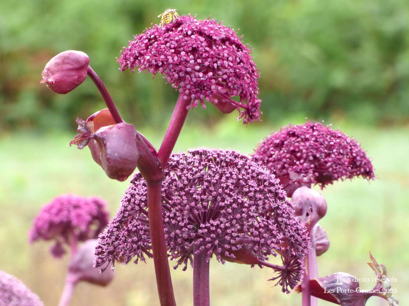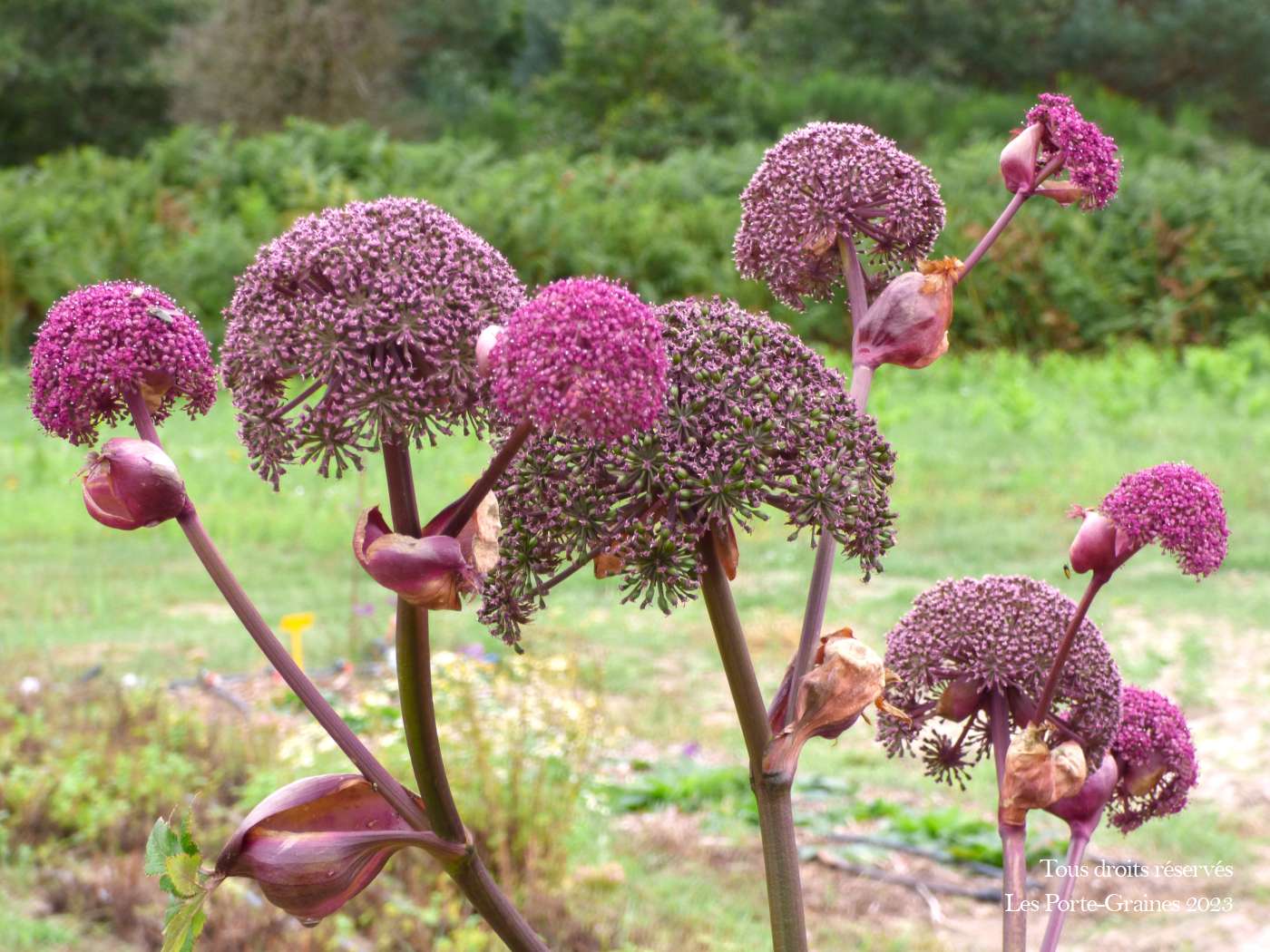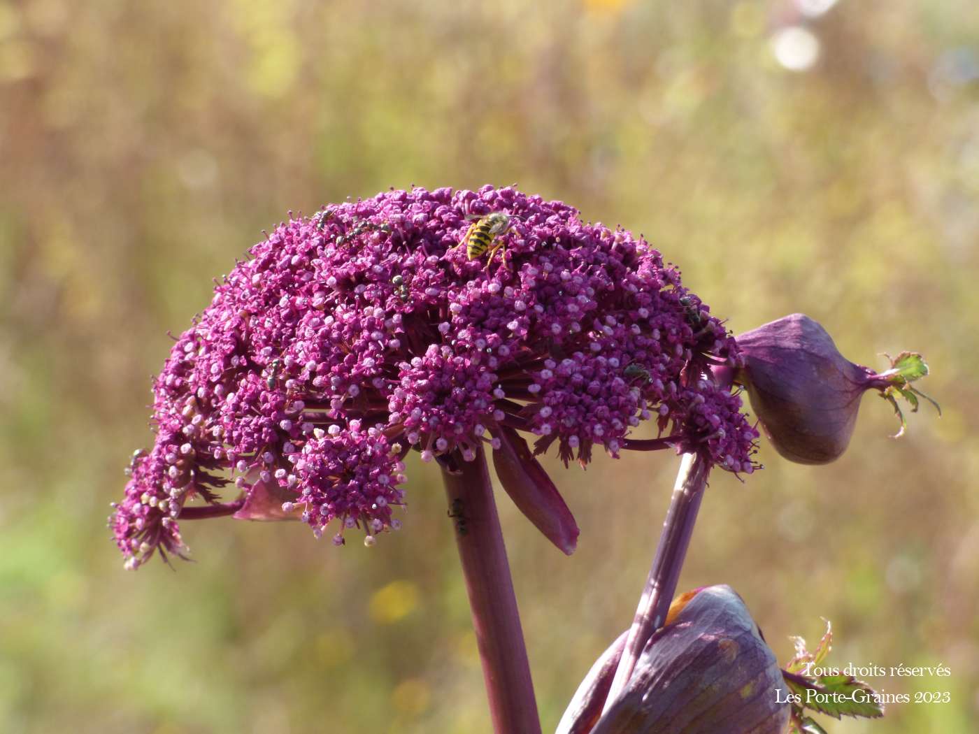 Belle angélique asiatique à la magnifique floraison pourpre. Les fleurs de l'Angelica gigas mesurent entre 10 et 15 cm de diamètre et sont très mellifères tout comme l'angélique vraie. > lire la suite