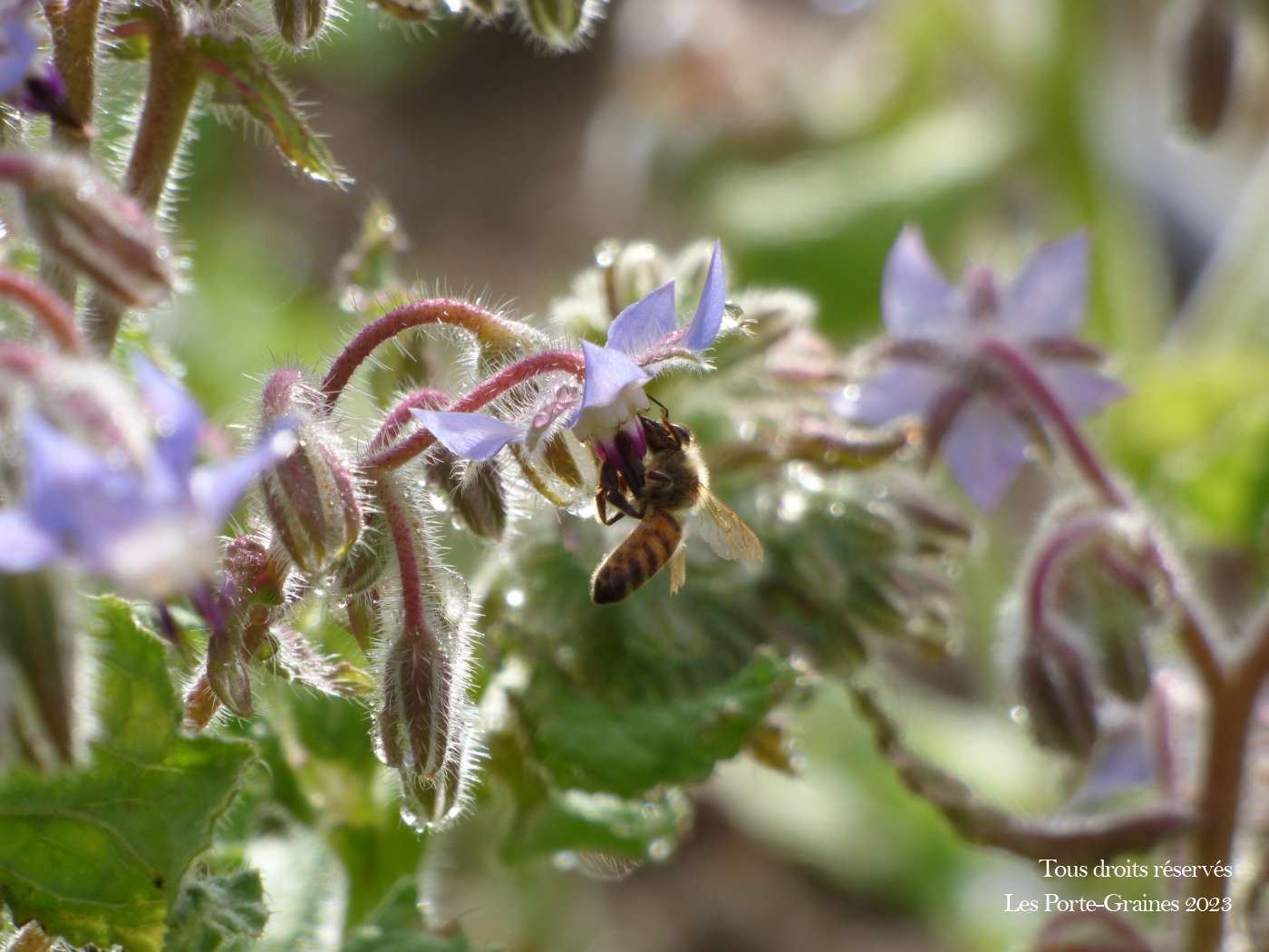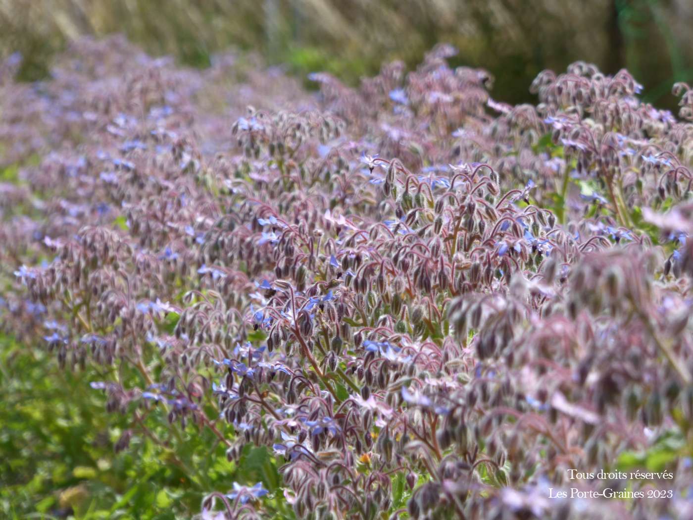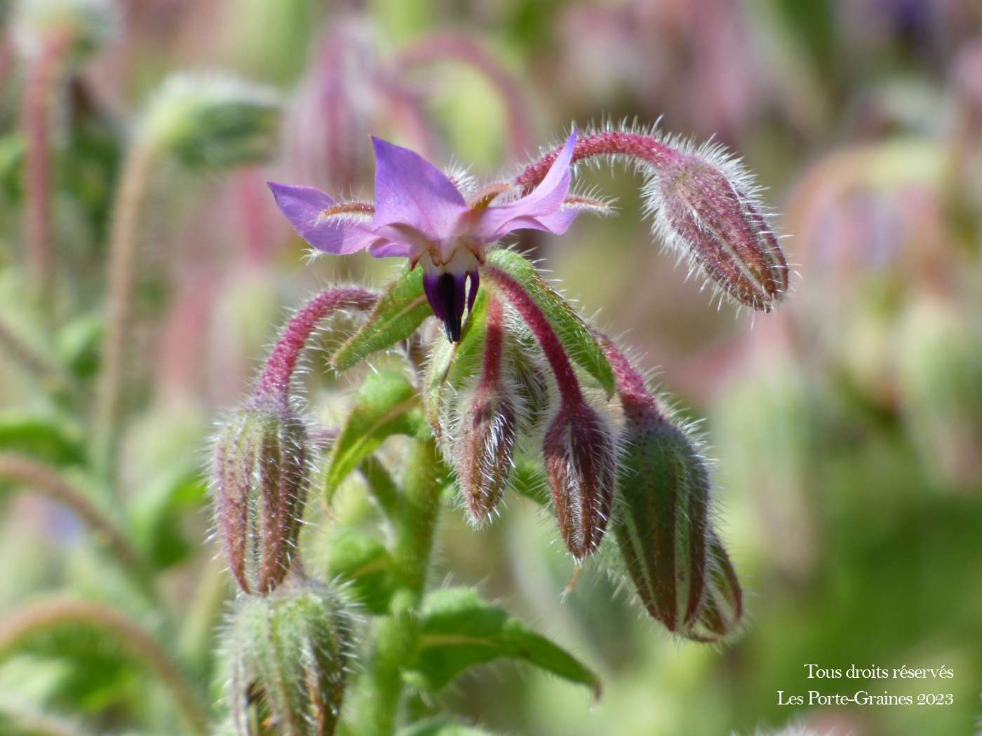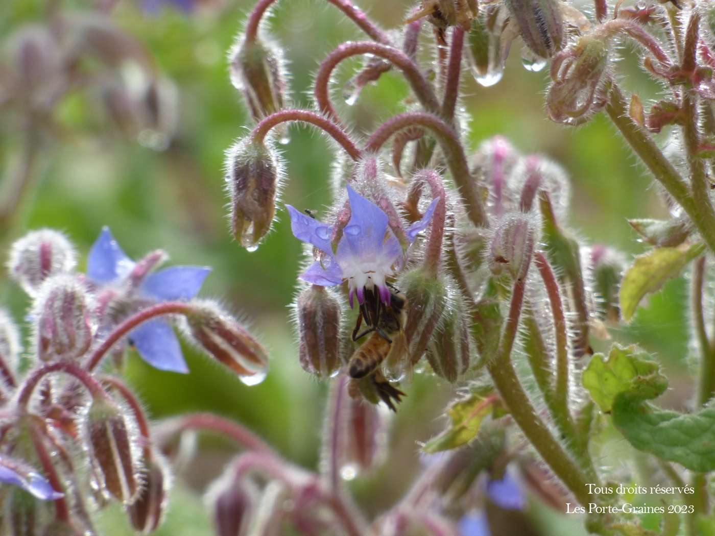 Bourrache bleue - Abu rach - Borage - Cool tankard - Starflower - Tailwort, talewort. Noms botaniques précédents : Borago advena - Borago aspera - Borago hortensis