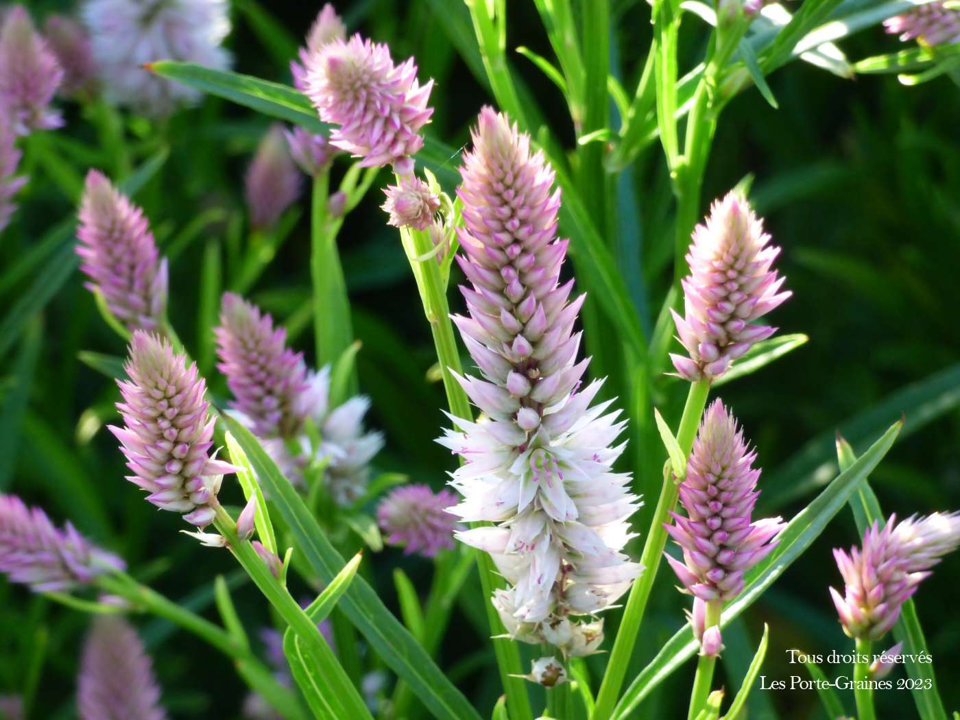 La Celosia argentée 'Flamingo' offre une alternative très élégante et plus rustique à la fameuse Celosia cristata (ou Crête de Coq) très utilisée en fleuristerie.