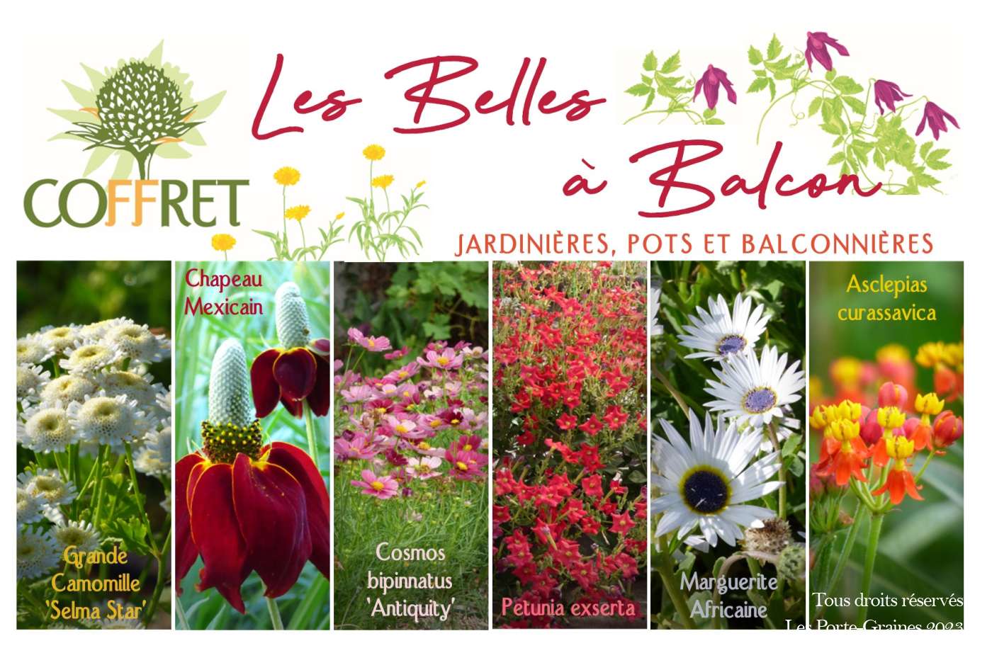 Une sélection de 6 sachets de graines de fleurs sortant des classiques de jardinerie pour la culture en pot :