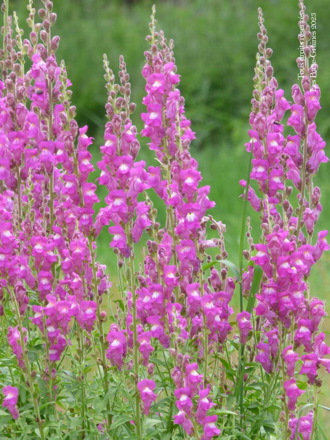 Le Muflier sauvage (Antirrhinum majjus ssp. majus) est un muflier botanique, la forme sauvage vivace du muflier des fleuristes. Il forme de petits buissons ligneux pourvus d’une longue et abondante floraison parfumée. Très rustique, il passera l’hiver sans problème au soleil ou à la mi-ombre dans tous sols secs bien drainés en hiver.