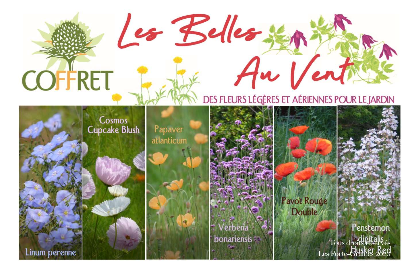Une sélection de 6 sachets de graines de fleurs légères pour le jardin.