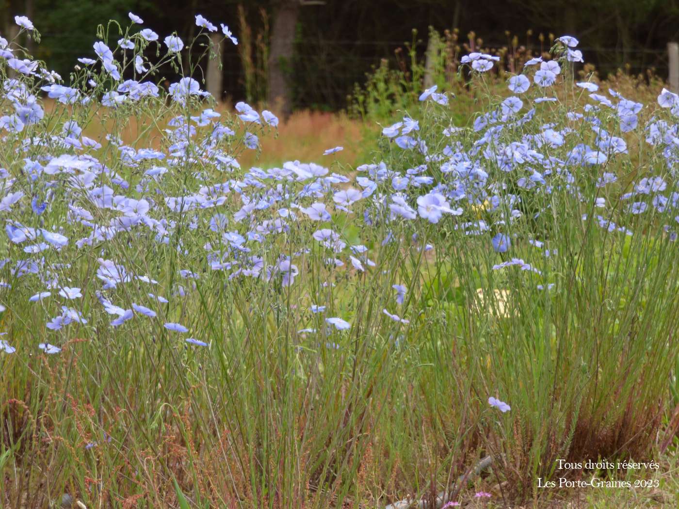 Le Lin vivace bleu (linum perenne) se pare au début de l'été de vagues de centaines de petites fleurs bleues flottant avec légèreté en haut de fines tiges d'une délicatesse toute champêtre. Les fleurs du lin se fanent rapidement mais se succèdent généreusement pendant plusieurs semaines.