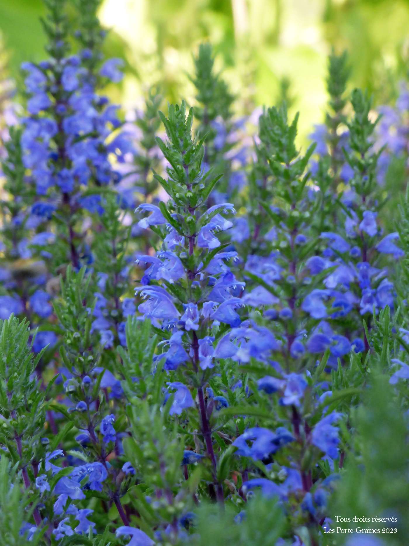 Le Thé des Jardins (Dracocephalum moldavica) laisse émerger dès le début de l'été de belles fleurs bleues lumineuses disposées en épis bien garnis. Très mellifère, sur l'exploitation il a été très visité tout l'été par une troupe de Sphinx colibri.