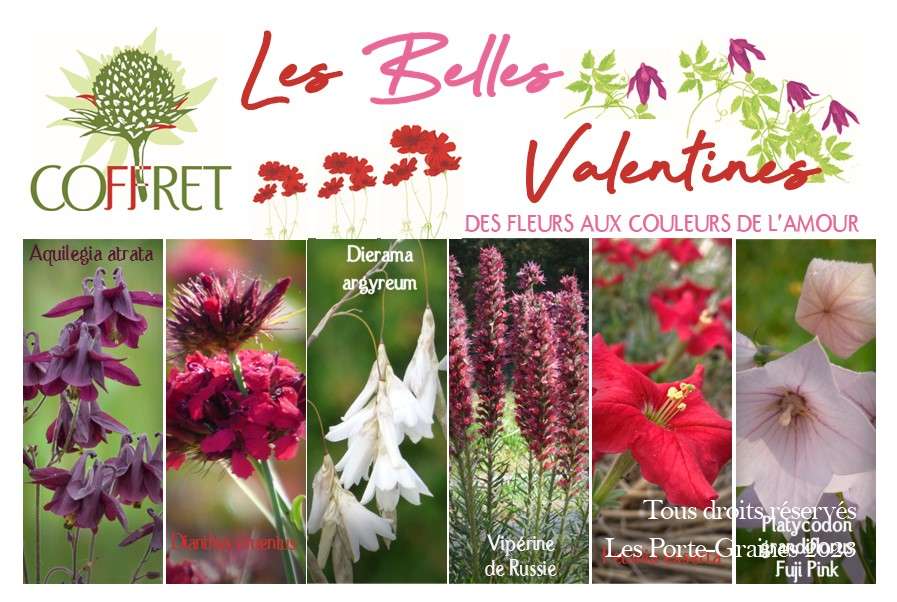 Une sélection de 6 sachets de graines de fleurs botaniques originales aux couleurs de l'Amour.
