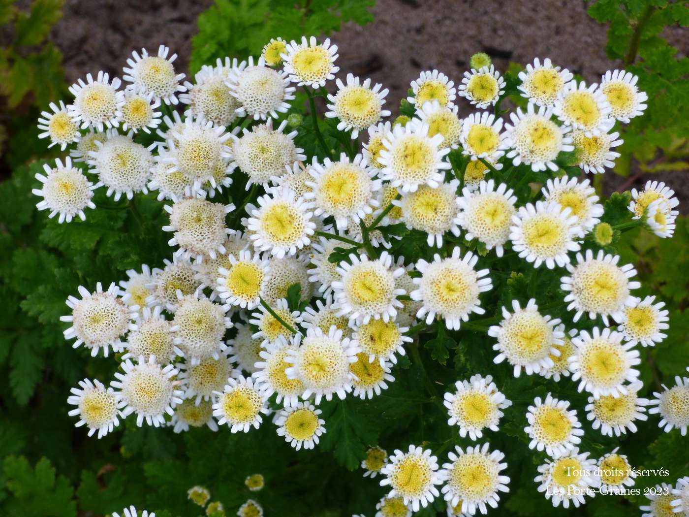 Tanacetum parthenium 'Selma Star'