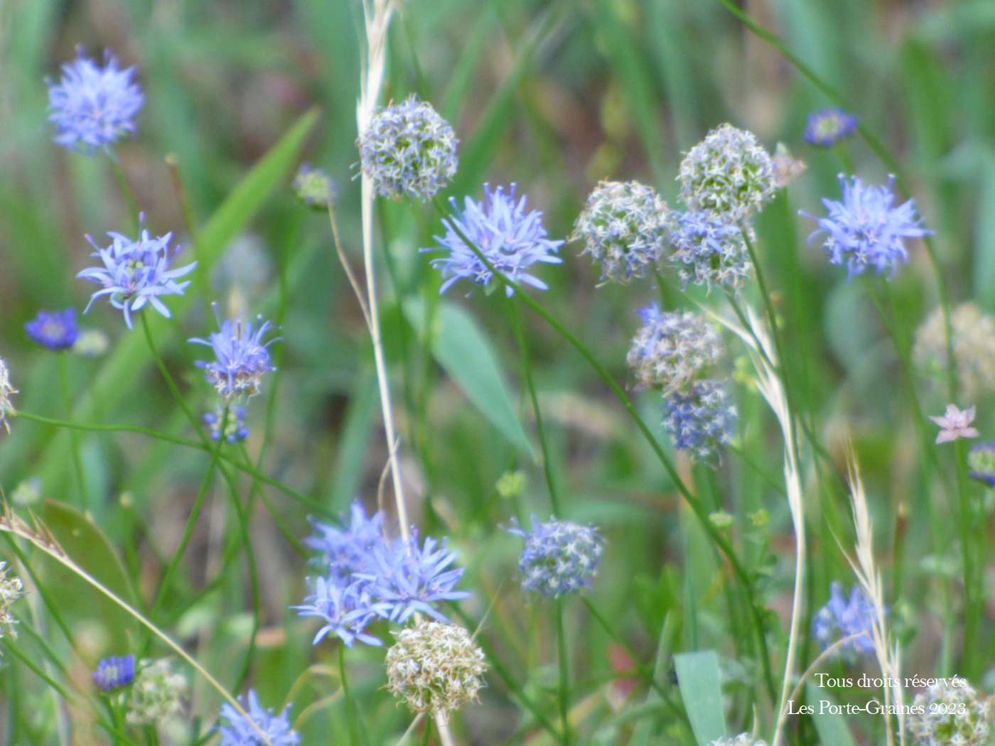 La Jasione montana est une petite fleur sauvage très lumineuse qu'il faut planter en groupe pour obtenir un bel effet visuel. Elle attire de nombreux petits papillons butineurs.