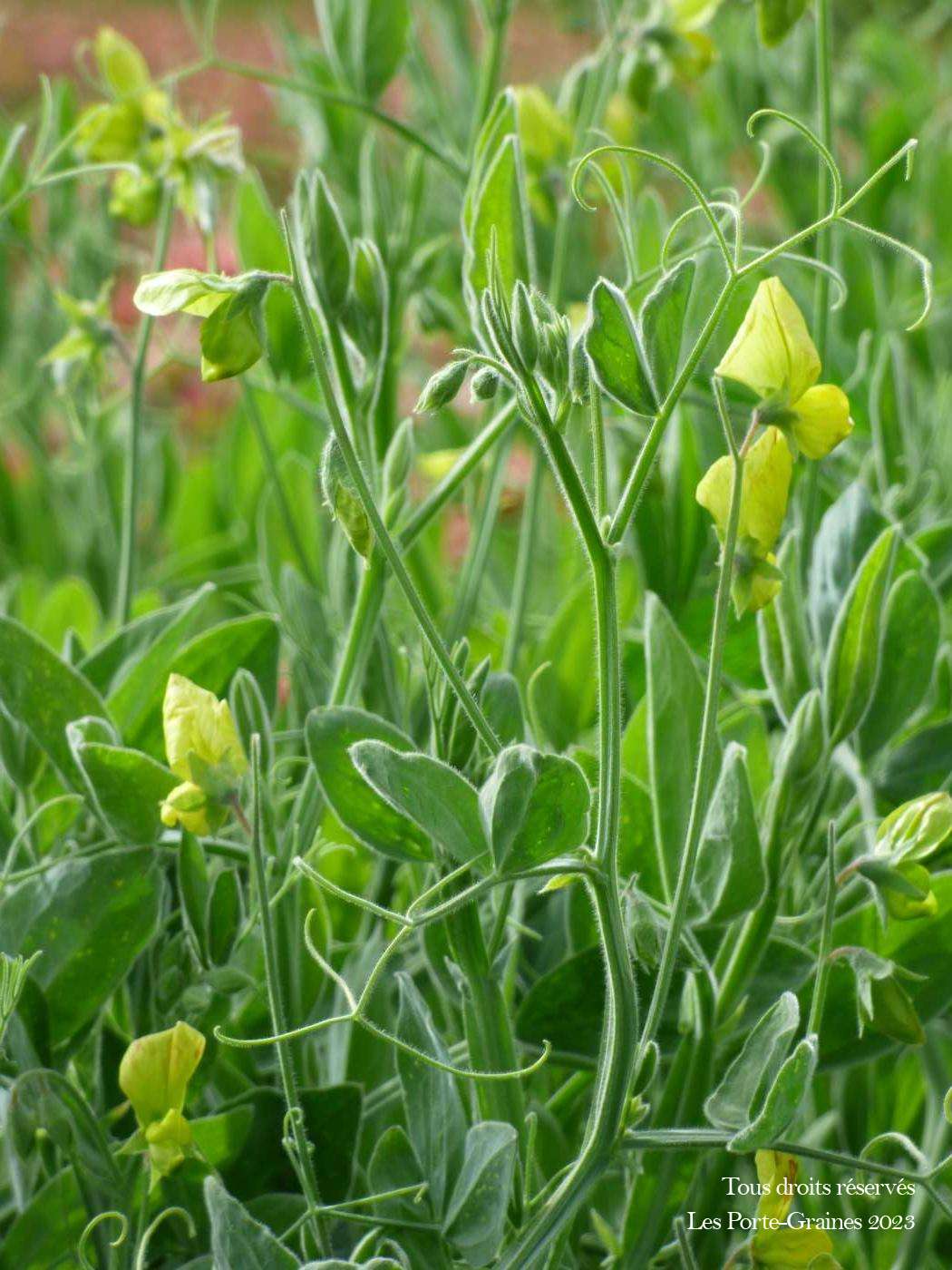 Le Lathyrus chloranthus est une plante grimpante originale qui offre une floraison tout à fait surprenante dans les tons jaunes et verts légèrement pourprés.