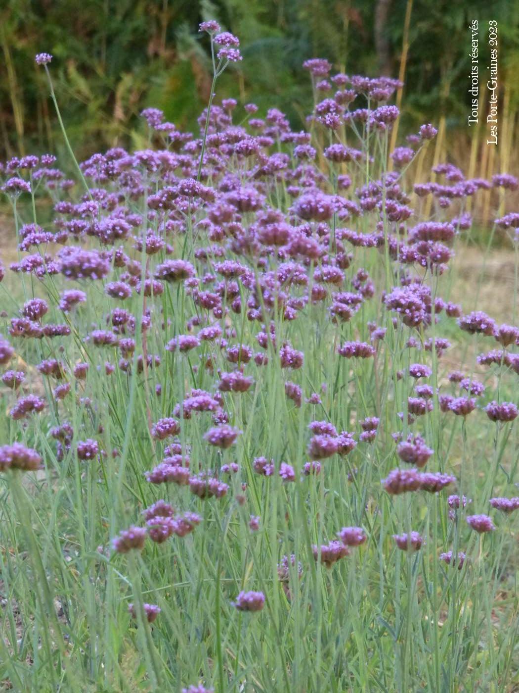 La Verveine de Buenos Aires (Verbena bonariensis) offre une floraison aérienne violette très graphique qui peut être une alternative originale aux graminées dans un massif. C'est une plante mellifère qui attire notamment les papillons.