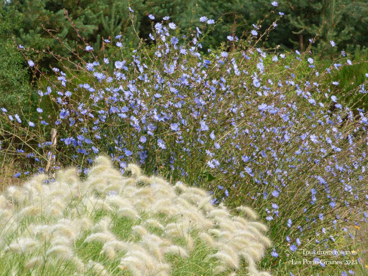 La chicorée sauvage (Cichorium intybus) est une fleur vivace bleue très rustique, adaptée aux sols pauvres et aux jardins secs. Facile à semer, comestible et mellifère, elle est idéale pour les prairies fleuries et les jardins naturels. Floraison : juin à septembre - Rusticité : -45°C.