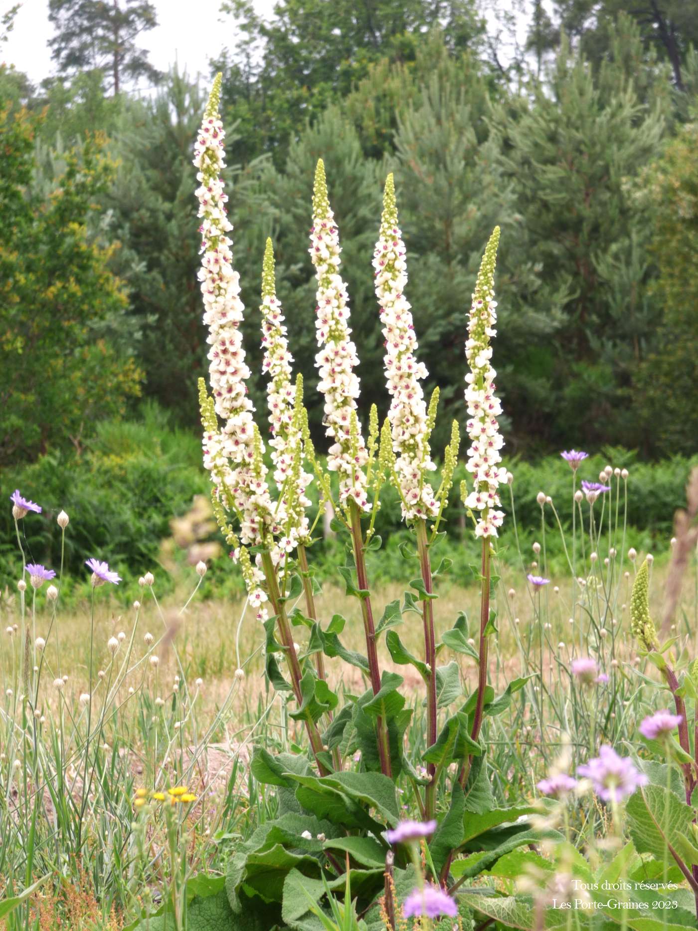 Le Verbascum chaixii est une fleur vivace qui peut se comporter en bisannuel mais il se ressèmera spontanément aux alentours si vous le laissez monter à graine.