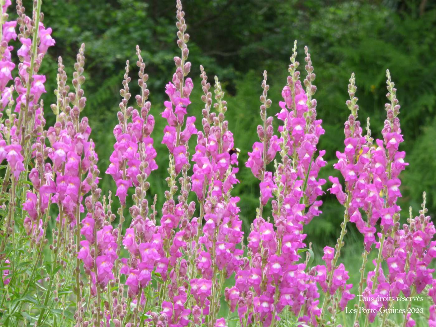 Le Muflier sauvage (Antirrhinum majjus ssp. majus) est un muflier botanique, la forme sauvage vivace du muflier des fleuristes. Il forme de petits buissons ligneux pourvus d’une longue et abondante floraison parfumée. Très rustique, il passera l’hiver sans problème au soleil ou à la mi-ombre dans tous sols secs bien drainés en hiver.