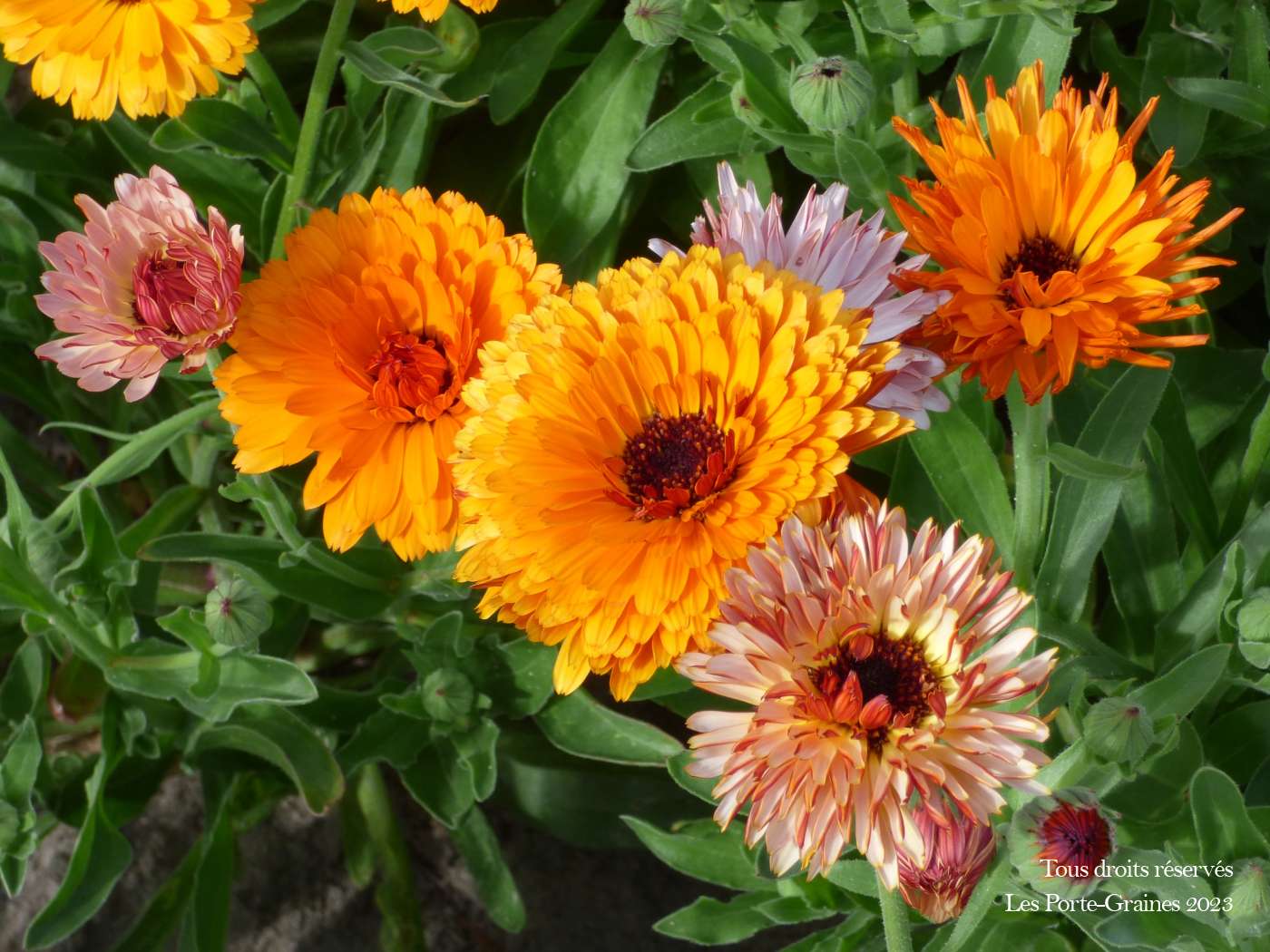 Le Souci des jardins 'Flashback Mix' (Calendula officinalis) est une superbe variété annuelle aux couleurs à la fois tendres et très gaies, des roses, des oranges, des jaunes, autant de couleurs qui nous replongent dans la douceur de l'enfance.