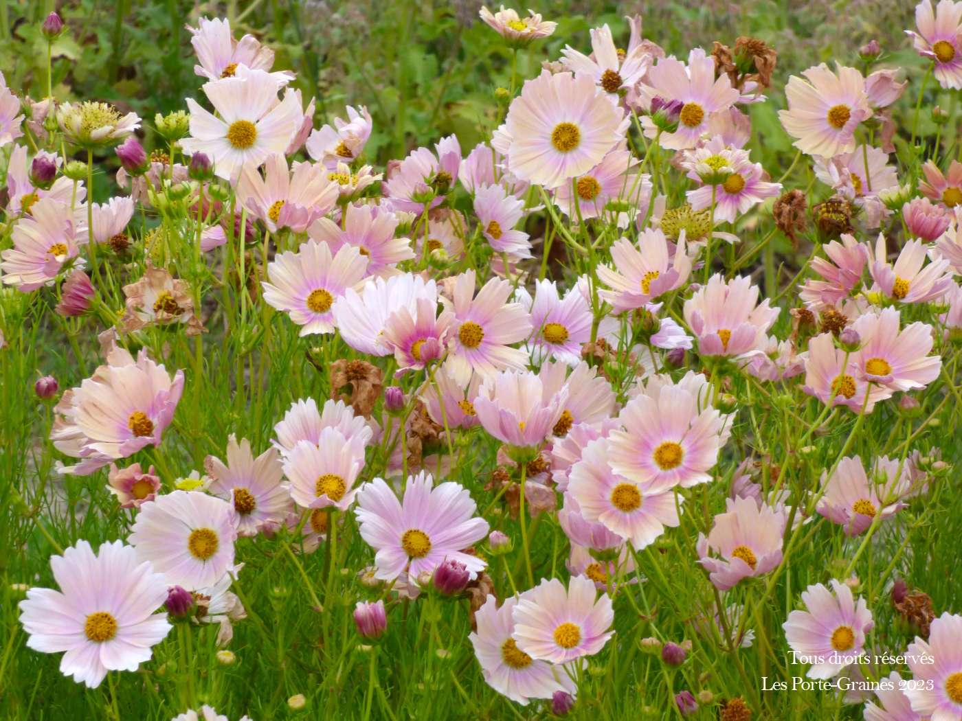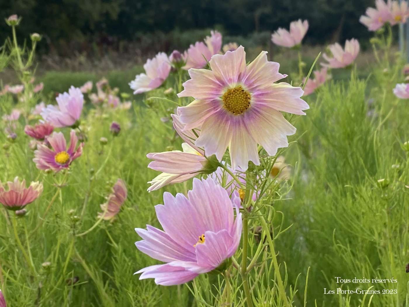 Le Cosmos bipinnatus 'Apricot Lemonade' ravit par l'originalité et la douceur de sa floraison rose aux légères nuances abricot acidulé. Abondante floraison. Facile de culture. Fleur coupée.
