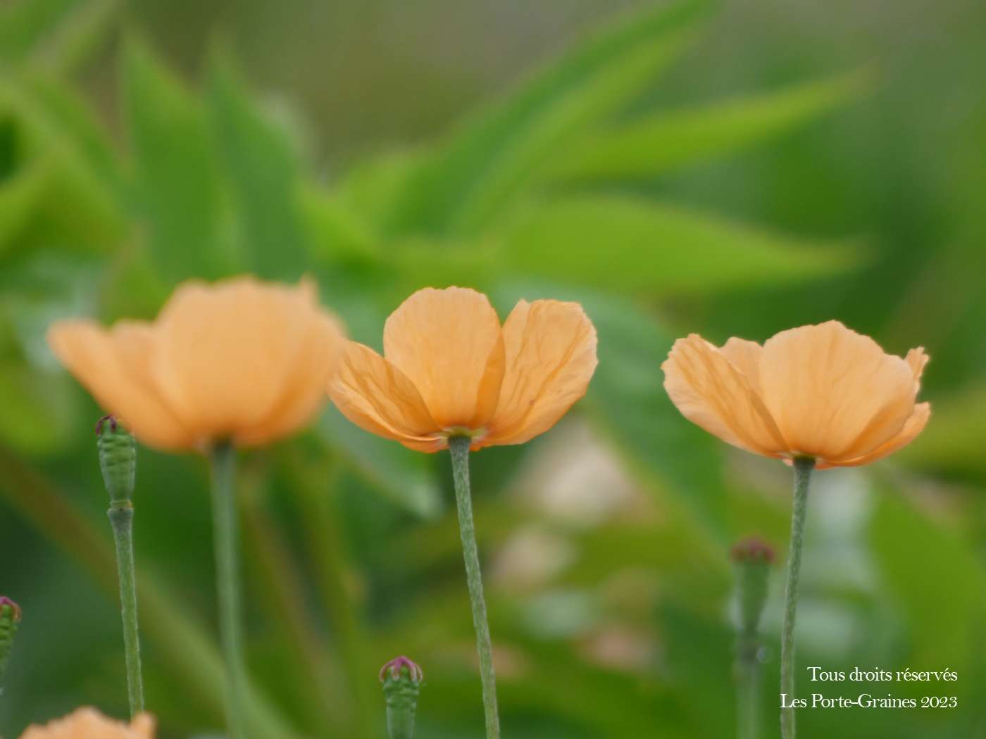 Le Pavot du Maroc (Papaver atlanticum) offre une longue floraison orange pâle, originale dans la famille des pavots. Comme tous ses congénères sa montée en graine (capitule) est elle aussi ornementale, même si plus discrète, prolongeant encore le plaisir de pouvoir l'admirer au jardin.