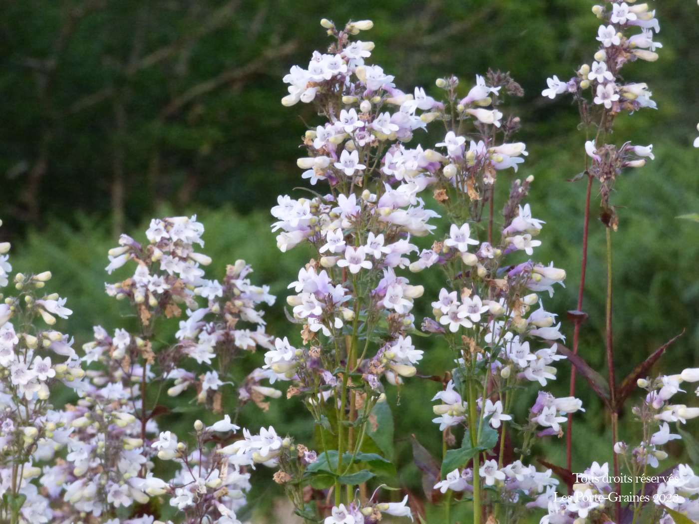 Le Penstemon digitalis 'Husker Red' se pare dès le début de l'été d'une abondante floraison blanche à rose pâle contrastant joliment avec un ravissant feuillage bicolor vert et pourpre. L'ensemble est très féminin et élégant. Ses hampes florales en plus d'être très mellifères sauront sublimer des arrangements floraux en fleurs coupées.