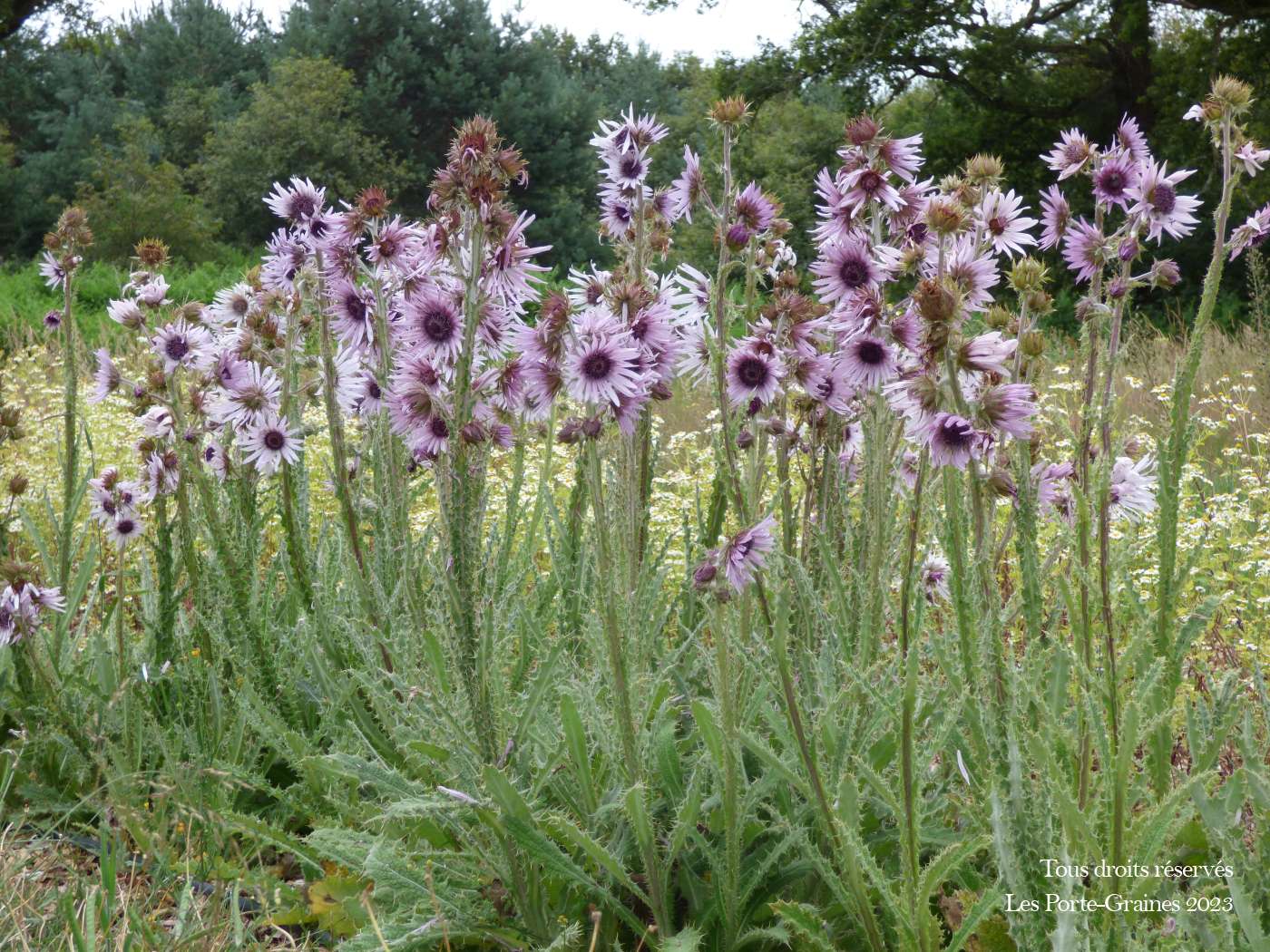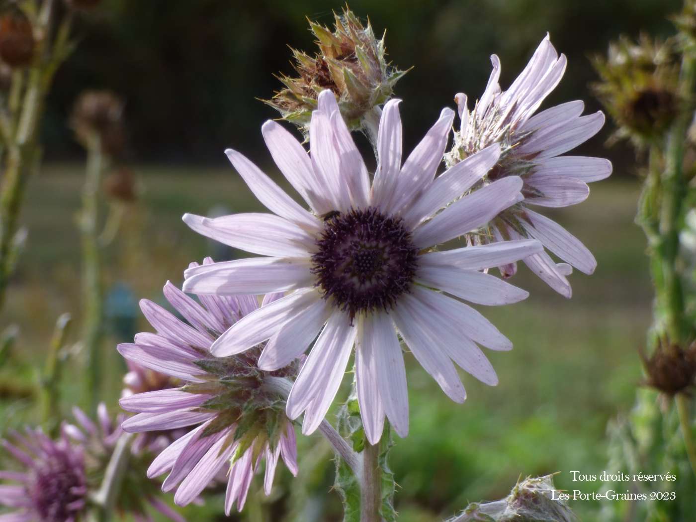 Le Berkheya purpurea produit de grandes fleurs mauve clair émergeant d'un ravissant feuillage en rosette à la fois tendre et duveteux mais particulièrement piquant.