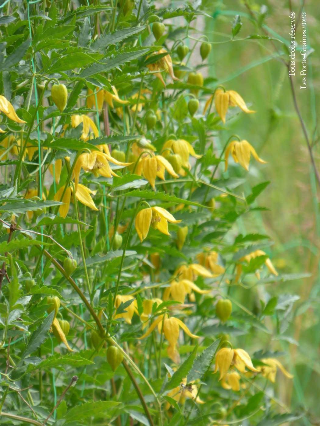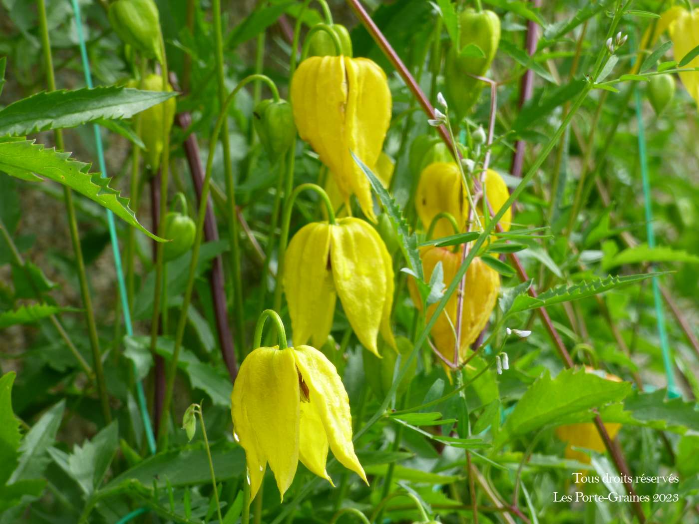 La Clematis tangutica est une Clématite botanique très facile à réussir à partir du semis, elle offre une abondante floraison jaune très originale en forme de petites cloches duveteuses et délicates. Jolie grainaison en fin de saison.