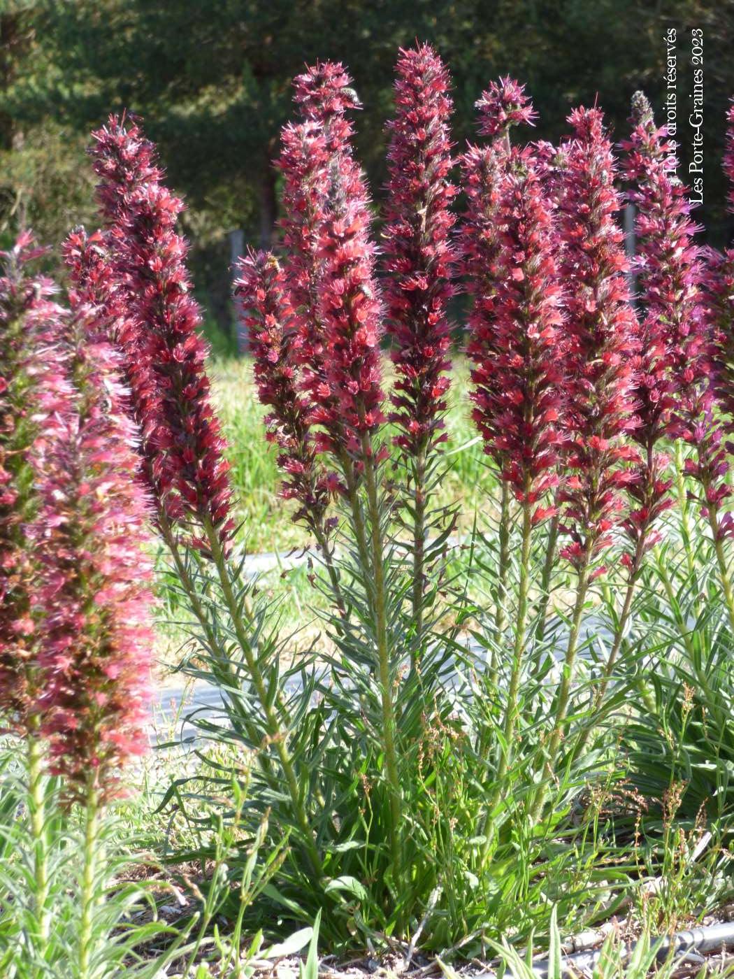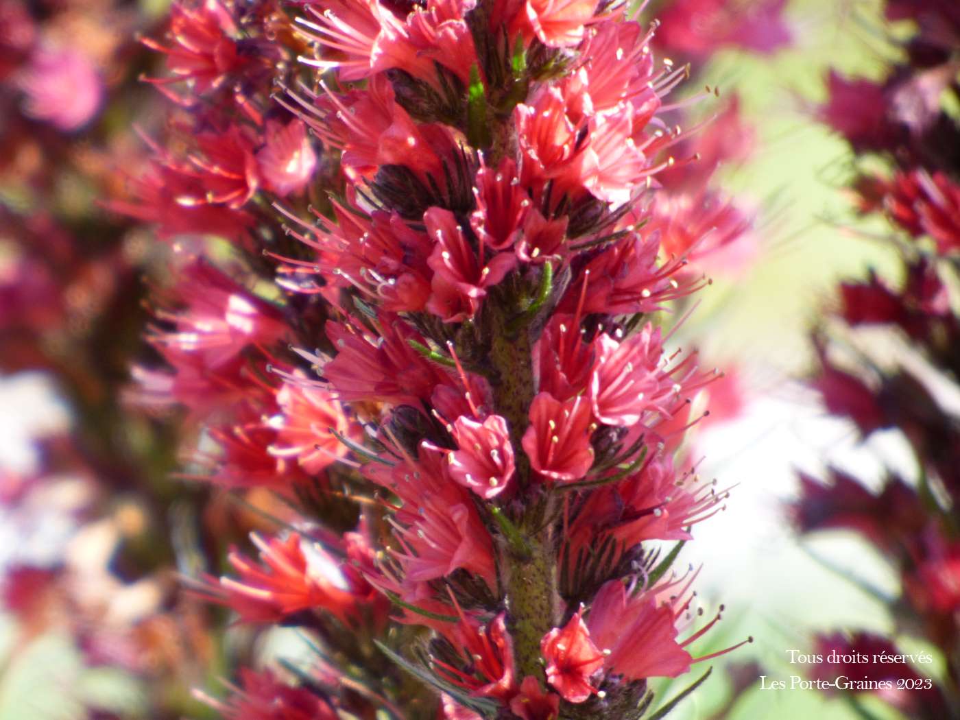 la Vipérine de Russie (Echium russicum) est une espèce botanique à la magnifique floraison rouge sang très visitée par les insectes butineurs. Très facile à cultiver, se ressème spontanément aux alentours. Pour des sols secs et bien drainants bien exposés au soleil.