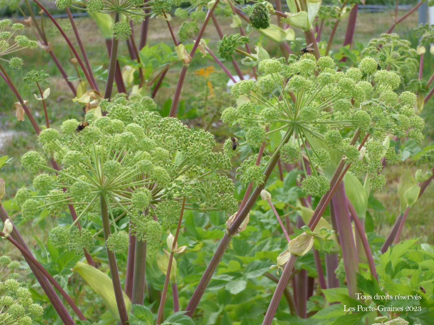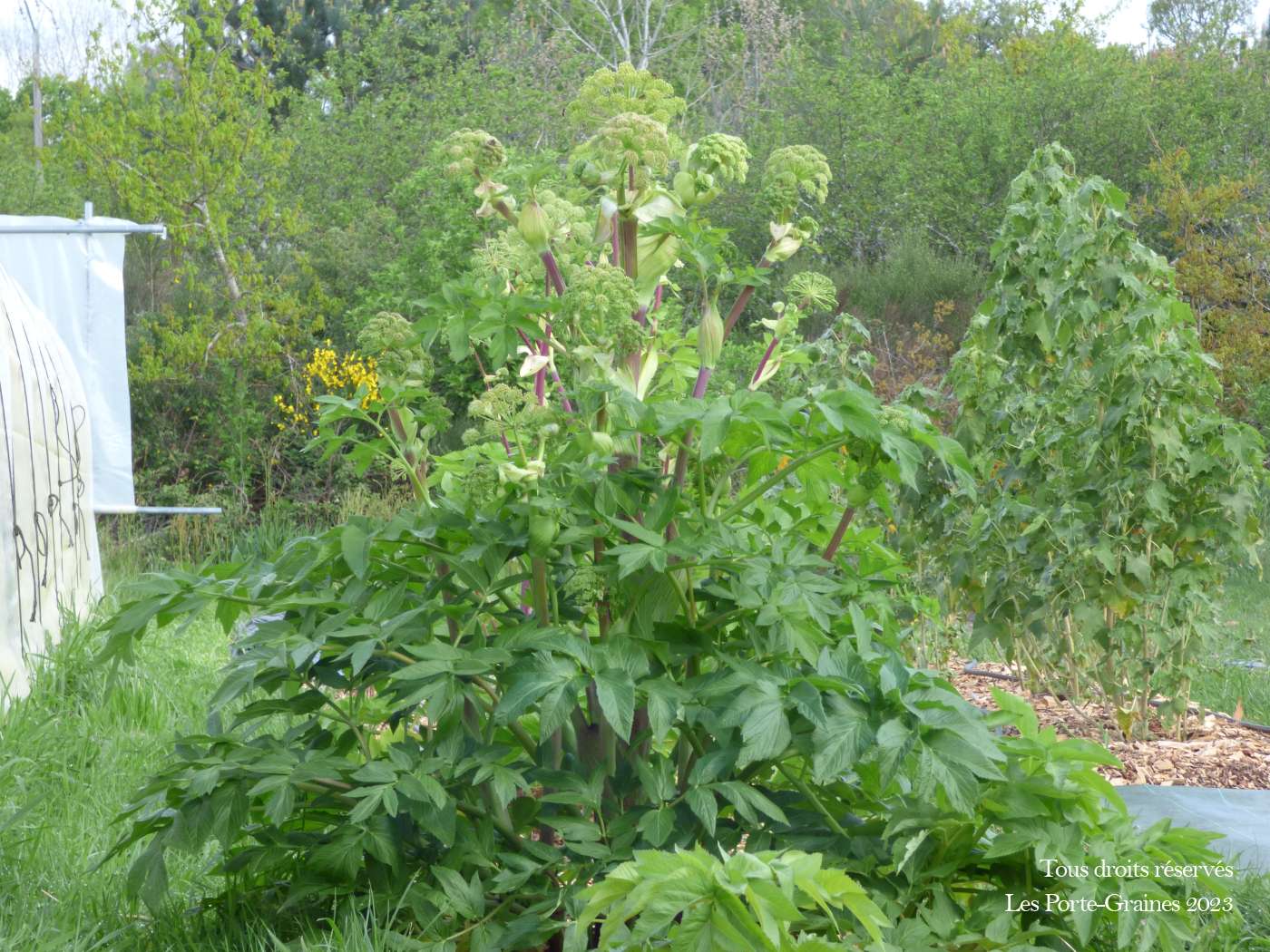 L'Angélique vraie (Angelica archangelica) possède un port imposant et majestueux. Pouvant atteindre 2m de haut, elle offre une très belle floraison verte, sphérique et généreuse, extrêmement appréciée par les insectes butineurs.