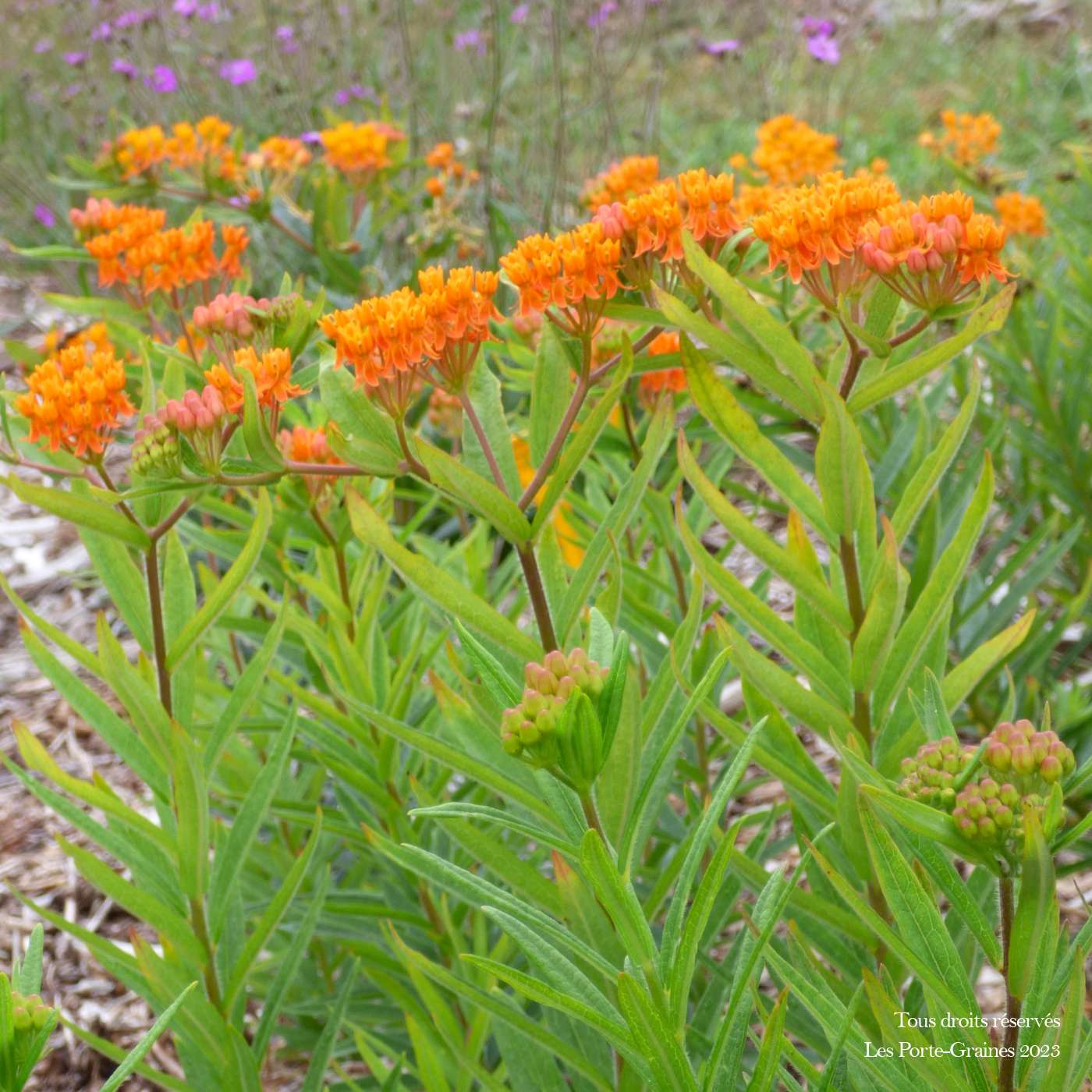 L'Herbe aux Papillons (Asclepias tuberosa) produit du milieu à la fin d'été des grappes de fleurs orange vif ressemblant à de petits bonbons de sucre. Les fleurs sont petites, à cinq pétales, et sont disposées en ombelles. Elles attirent fortement les papillons, d'où le nom commun "herbe à papillons". l'Asclepias tuberosa est notamment une plante hôte des larves du papillon monarque en Amérique du Nord.
