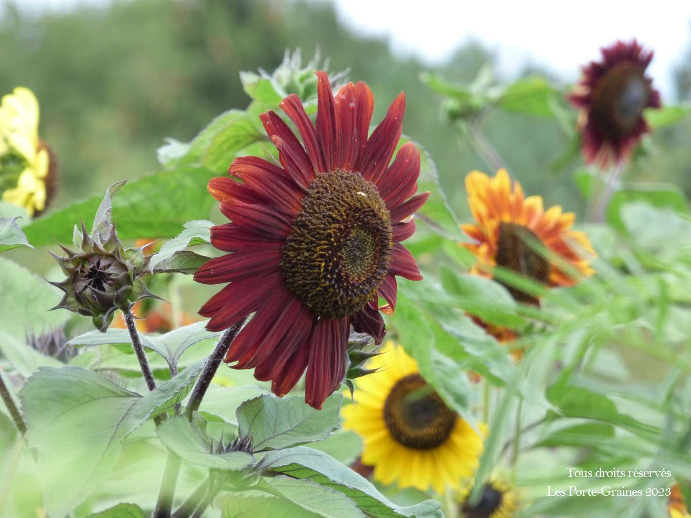 Un magnifique mélange des plus belles variétés de tournesols annuels sélectionnées et cultivées sur l'exploitation, de quoi composer de magnifiques bouquets. Facile de culture. Attire particulièrement les bourdons, graines très appréciées par les oiseaux.