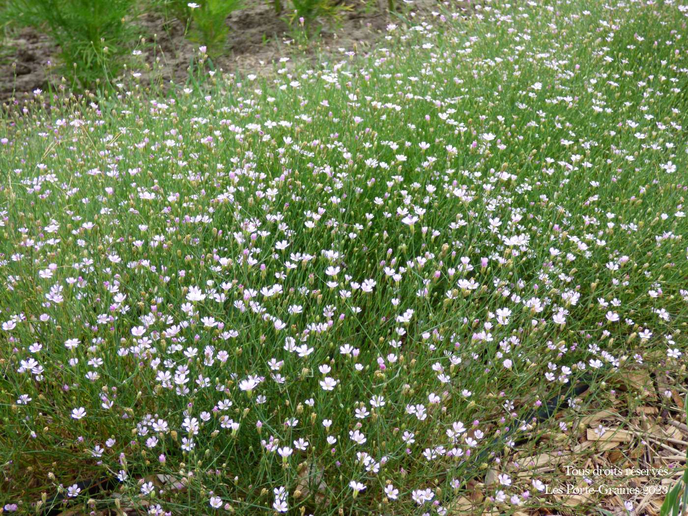 Le Petrorhagia saxifraga ou Œillet des rochers est un charmant couvre sol tout en légèreté, constellée de petites fleurs rose pâle qui ne cessent de se succéder pendant plusieurs semaines.