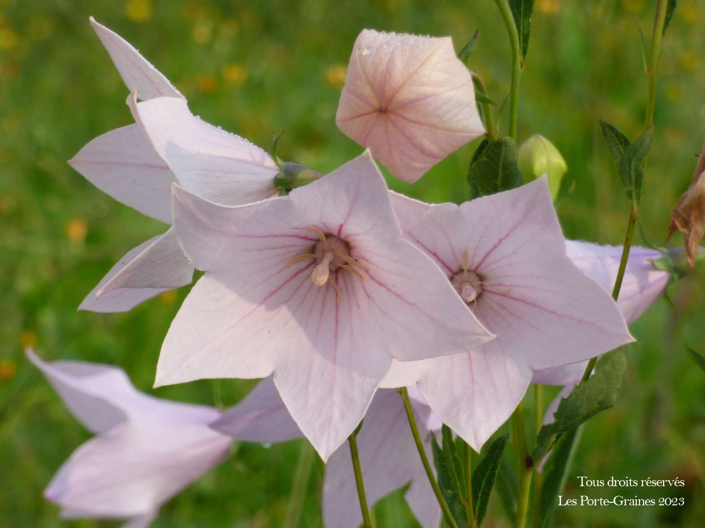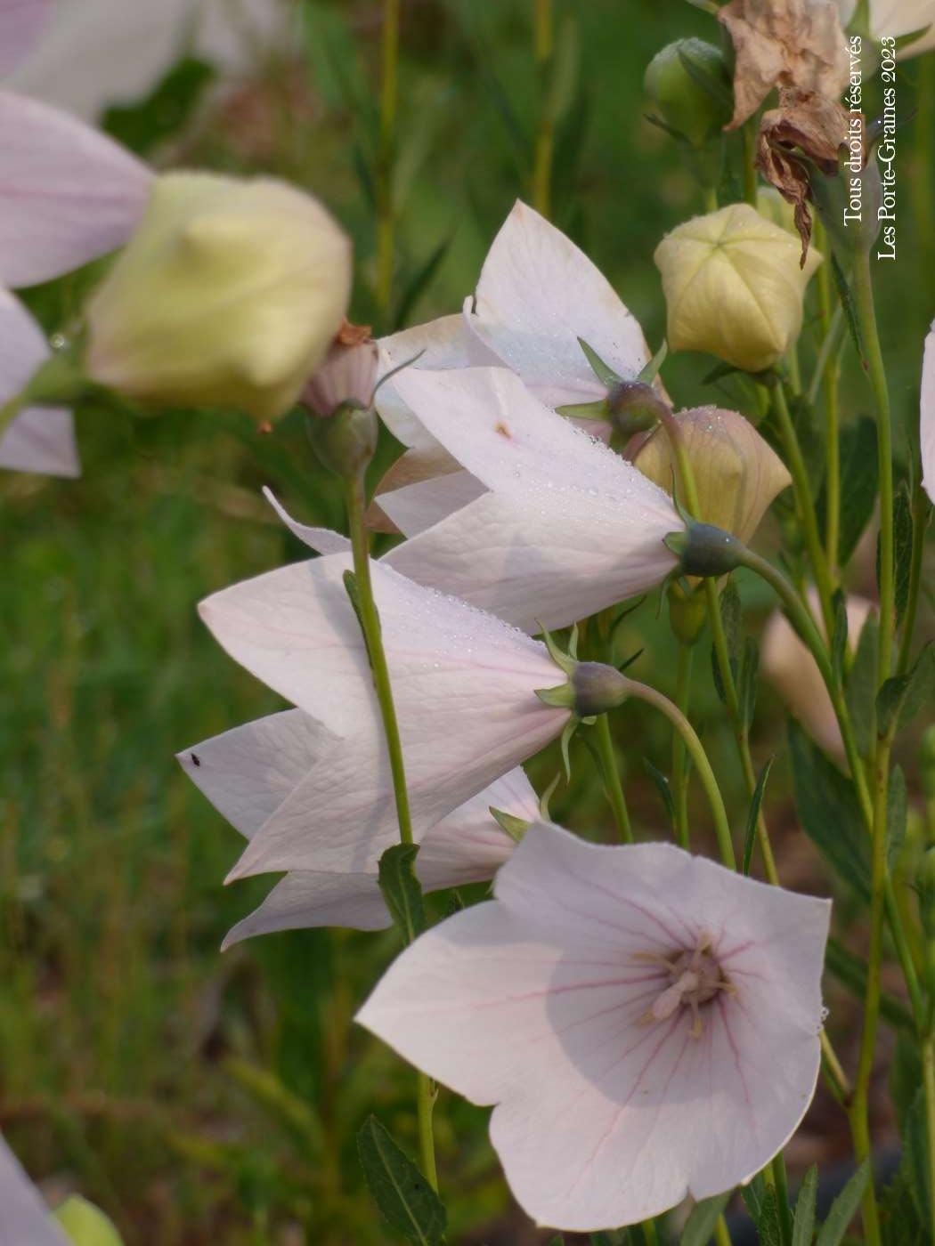 Le platycodon laisse d’abord émerger de ravissants boutons floraux bien dodus qui s’ouvrent successivement pour laisser apparaître de grosses fleurs très légères en haut de tiges graciles. Jolie variété rose pâle.