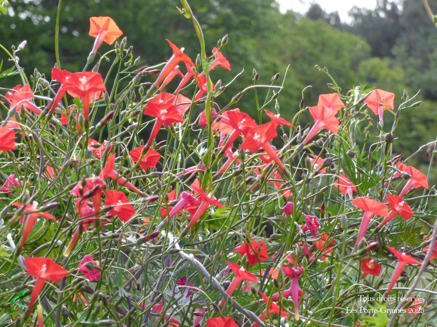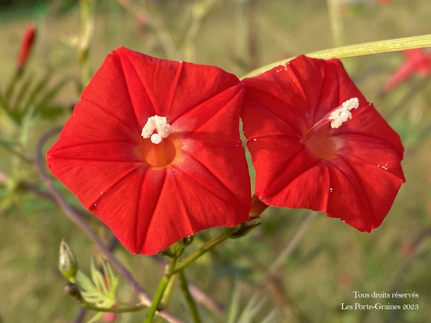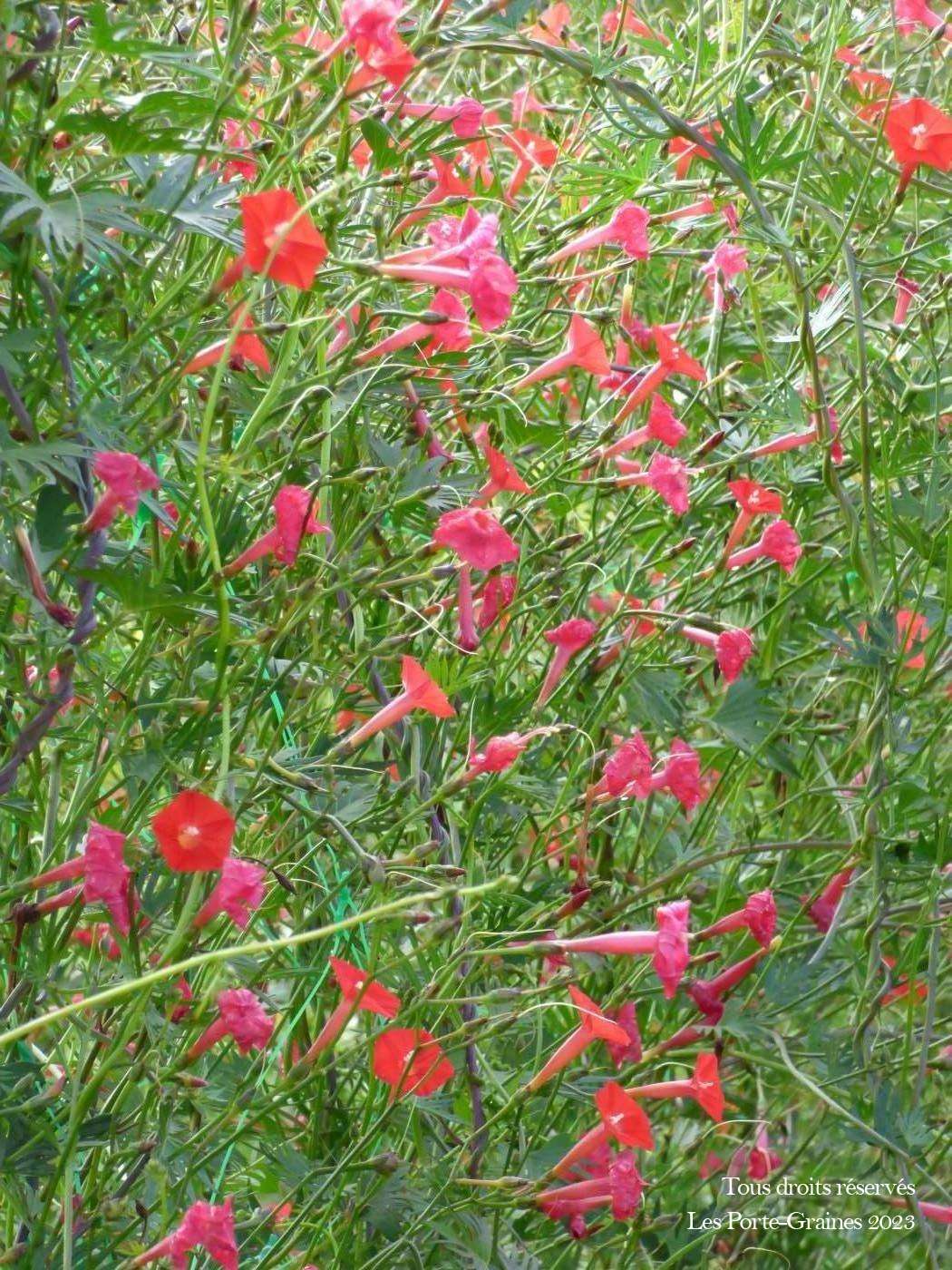 quamoclit cardinal, liseron à feuilles laciniées, cheveux de Vénus, liane du paradis, amourette, peigne de Vénus, cypress vine, cypress vine morning glory, cardinal creeper, cardinal vine, star glory,