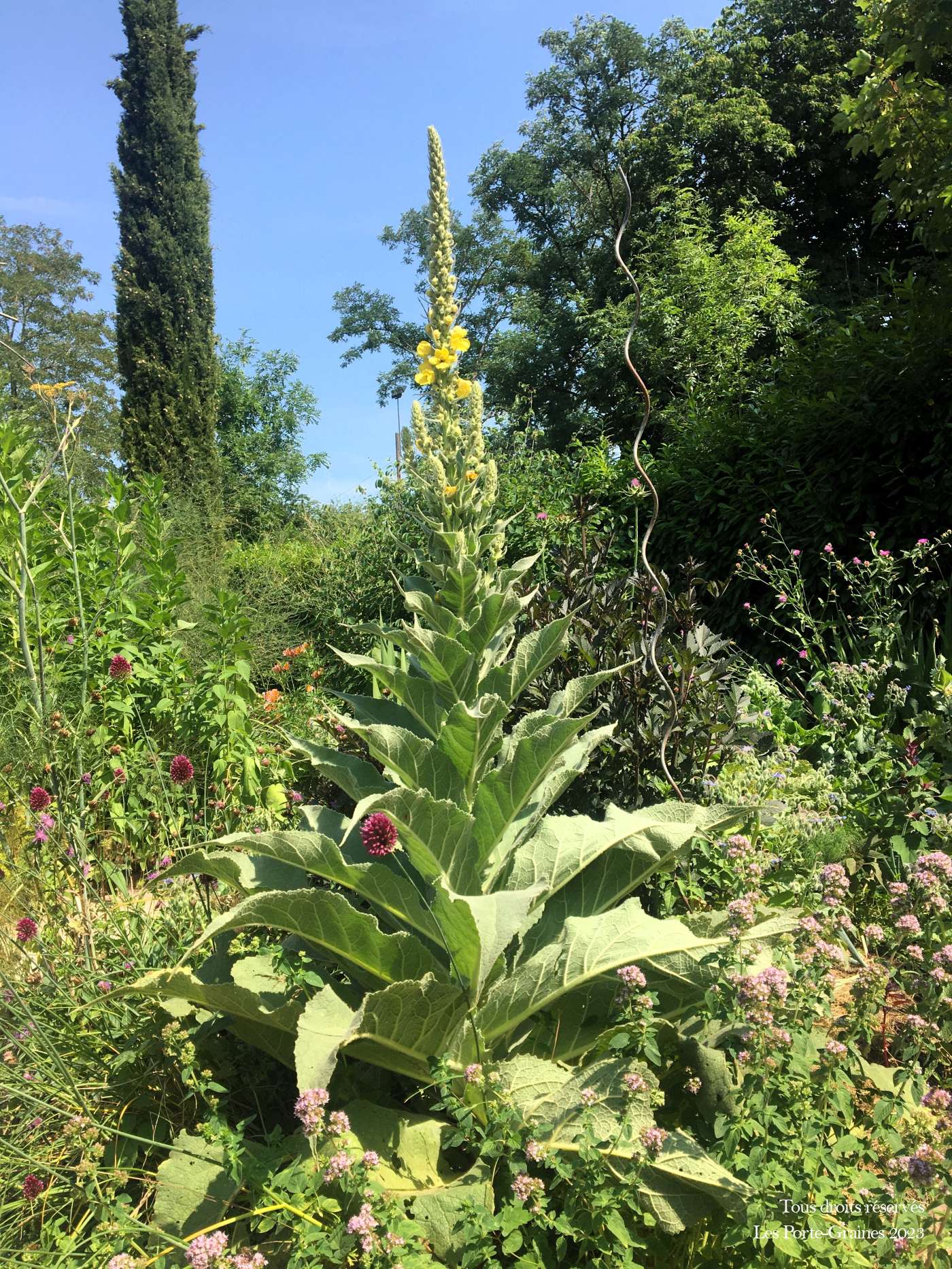 Le Bouillon blanc est une plante majestueuse qui produit une grande rosette duveteuse très décorative d'où émerge une hampe florale pouvant mesurer plus de 2m et fleurir 3 mois durant.