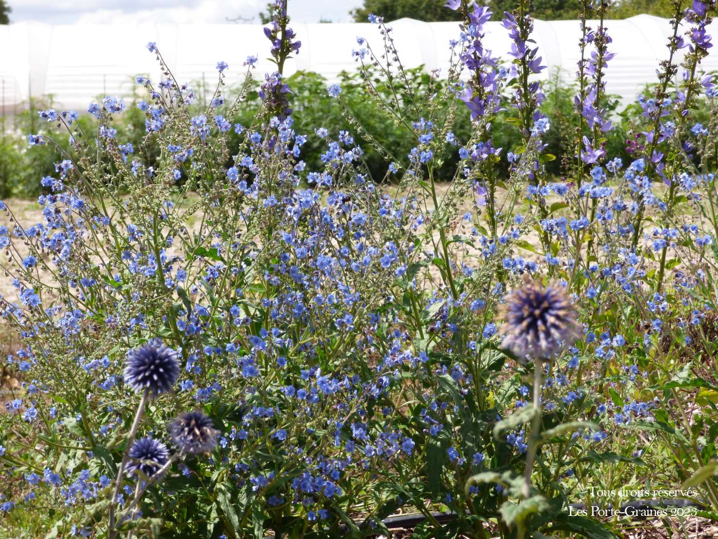 Le Cynoglossum amabile est une espèce botanique se couvrant d'une magnifique floraison de myosotis, une constellation de fleurettes d'un bleu intense et lumineux.